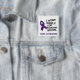 Llevo el botón púrpura de la cinta de la