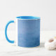 Comience su día con una taza de relajación de su bebida caliente preferida con esta taza hermosa en tonalidades suaves del azul y de indirectas en púrpura.
