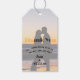 La etiqueta de favor con el mensaje de agradecimiento forma parte de la colección We Do. Es ideal para acompañar a un boda de verano en la playa o al atardecer. Los colores son melocotón claro y violeta oscuro.