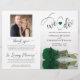 Este hermoso programa de bodas es moderno y elegante. El diseño plegado DIY incluye letras de guiones modernas en la parte delantera que dice "lo hacemos" con los nombres de la pareja y fecha/ubicación del boda. Una foto de un bonito rosa de color verde esmeralda de tallo largo refleja en un estanque de agua con olas y olas. El interior tiene la misma flor que el fondo de una marca de agua con espacio para la ceremonia y los detalles de la fiesta nupcial. La parte de atrás tiene su foto, junto con un espacio para un personalizable de agradecimiento, y una nota conmemorativa para reconocer a los seres queridos perdidos. Sofisticados, elegantes y modas, estos programas añadirán clase y estilo a su celebración boda. NOTA: Estos programas se envían como una hoja plana de papel, y tendrán que ser doblados. Hay una gran variedad de opciones de papel, pero la opción semi-brillante es una tarjeta ligera y será difícil de doblar limpiamente, por lo que recomendamos elegir una opción diferente.