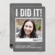 Invite a familiares y amigos a la fiesta de graduación de su ser querido con esta invitación o anuncio moderno de PiPo Press. Un audaz "LO LOGRÉ" en grises pizarra neutros con una foto de apertura le dice a todos lo orgulloso que está de su graduado. Perfecto para una invitación de fiesta o un anuncio de graduación de la escuela secundaria, universidad o programa de posgrado. Personalice con el nombre de su escuela en una variedad de colores y esta invitación está lista para enviar.
