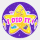 ¡Lo Hice! Regalo de recompensa o celebración para un niño que ha cumplido la difícil tarea de atar sus cordones. Este pegatina redondo presenta imágenes de calcetines, zapatos, encajes y decoración de zapatos. Fue diseñado para la serie de libros Learn To Ae With The Rabbit y The Fox de Sybrina Durant.