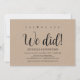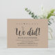 ¡Sí, podemos! ¡Lo hicimos! Esta tarjeta de invitación temática de boda fugaz rústica en kraft es perfecta para la recepción de su boda y la fiesta de celebración después de la boda. Agregue sus detalles en fuente / letra negra a juego.