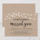 Hermosas Luces de Cadena de Granja Rústica Moderna, fuente de letra negra en fondo de Kraft marrón, Anuncio de Boda Elopement, tarjeta de invitación (Lo hicimos y te extrañamos). Esto es perfecto para la recepción de su boda y la fiesta de celebración después de la boda. Agregue sus detalles en la misma letra / letra.