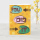 Un aspecto retro con un fondo de burbuja de oro y tres formas retro con las palabras Lo hiciste. Inside dice: "Estamos orgullosos de ti".