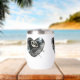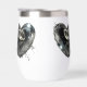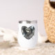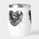 Botella de agua de diseño bonito para un boda. Esta botella de agua tiene una imagen impresa de una pintura acrílica. La pintura acrílica tiene dos bandas bodas de tono plateado dentro de un corazón con forma de cristal. Un gran regalo para la novia y el novio.