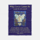 El arte presenta lo que el cáncer no puede hacer azul y el oro Angel". Esta pintura tiene la colorida pintura gruesa y el poema de "Lo que el cáncer no puede hacer" gira a su alrededor. Las palabras del poema dicen "Lo que el cáncer no puede hacer, el cáncer es tan limitado... No puede paralizar el amor. No puede destruir la esperanza. No puede corroer la fe. No puede destruir la paz. No puede matar la(s) amistad(s). No puede suprimir recuerdos. No puede silenciar el coraje. No puede invadir el alma. No puede robar la vida eterna. No puede conquistar el espíritu. -Autor desconocido" Haz mantas de pulpa para tu personalizado o como regalo para un ser querido. Añade tus propias palabras o imágenes a esta manta suave para regalos especiales de cáncer.
