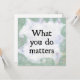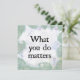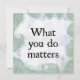 Un diseño de tipografía inspiradora motivacional incluye las palabras "Lo que haces importa" en un fondo abstracto blanco y verde claro.