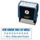 Este inspirador diseño de sellos de goma incluye el motivador mensaje "¡Sabes esto tan bien!" y el nombre de un educador personalizado. También tiene forma de estrella decorativa. Podría ser utilizado por un profesor o educador al marcar las asignaciones, para reconocer que el estudiante ha tenido un buen desempeño.