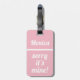 Coloque su bolso de viaje con esta etiqueta rosa brillante, puede cambiar el color del fondo haciendo clic en el botón personalizar.