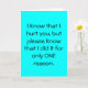 Una tarjeta que dice "Lo siento" tan honestamente que todos pueden identificarse con ella. "Sé Que Te Daño, Pero Por Favor Sé Que Lo Hice Por Una Sola Razón" ...Soy un idiota. Por Favor, Perdóname". Es una disculpa del corazón...pero con sentido del humor.