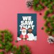 La frase "¡Lo vimos! Santa y Jesús siempre están mirando" es una expresión humorística y desenfadada que a menudo se usa para insinuar en broma que las acciones o el comportamiento de alguien han sido observados y serán considerados responsables. Combina alegremente las ideas de la vigilancia religiosa (Jesús) y la supervisión de la temporada de fiestas (Santa) para crear una advertencia humorística. Aunque la frase se usa a menudo de manera desenfadada, también puede interpretarse como un recordatorio de comportamiento moral y ético, sugiriendo que las acciones de uno siempre se observan y juzgan, ya sea por un poder divino o por otros a su alrededor. navidades nevando, meme cristiano, eres amado, fe, lo que haces, jesus está mirando, navidades, siempre contigo, nunca te abandonas ni te abandonas, religioso, dios, santa claus viene a la ciudad, vi que jesus, jesus vi que, memes, jesus es la razón de la temporada, cristianos, meme de internet, noche silenciosa, pejus esus, meme de dank