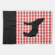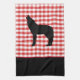 Esta toalla de cocina se muestra en un bonito diseño de estampado rojo enlucido con una huella de Lobo de piedra amarilla. Personalizar este artículo o compra tal cual. Imagen de archivo