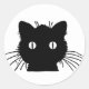 Este gracioso gato negro se ve un poco loco y salvaje. ¡pegatinas de felinos! Para tus libros, computadora o como sellos para sobres.