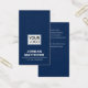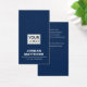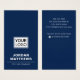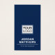 Color azul oscuro o personalizado, diseño moderno, profesional, vertical de tarjetas de visita con campos de plantilla para el nombre, el nombre/título de la empresa, logotipo (foto u otro gráfico) e información de contacto, incluidos iconos de medios sociales. Cambiar el color de fondo, mover y cambiar el tamaño de los elementos con la herramienta de personalización.