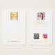 Una tarjeta de presentación para tu auricular o joyería hecha a mano. Fondo blanco, texto dorado. Personalice y agregue el logotipo de su empresa y la información de contacto en la parte delantera. Atrás: añade tu propia foto en la parte posterior y aprovecha la oportunidad para contar a tus clientes la historia de tu marca. Borrar si no se desea. Agregue su url al código QR a su cuenta de Instagram. Icono de Instagram.