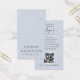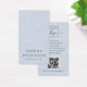 Modernas tarjetas de visita verticales con tu nombre y título en la parte delantera sobre un fondo de lino azul polvoriento claro impreso. campos de plantilla de personalizable para la información de contacto y el logotipo en la parte posterior. Puede mover y redimensionar elementos con la herramienta de diseño.