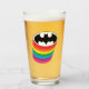 Orgullo DC| El emblemático logo de Batman con capas de colores arcoiris proyectados detrás de él.