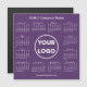 Crea tu propia tarjeta magnética moderna para el calendario 2026 con el logotipo, el nombre y el sitio web o la información de contacto de tu empresa. Reemplace el logotipo, nombre y texto de ejemplo por el suyo propio en la barra lateral. Rodeando tu logo hay un pequeño calendario blanco sobre un fondo morado. Su logotipo puede ser un círculo, cuadrado u otra forma. Los logotipos en blanco o en color claro funcionarán mejor con este diseño. Si desea que el color de fondo se muestre a través de su logotipo, cargue una versión de su logotipo con un fondo transparente. Hace un gran regalo promocional para los clientes. Incluye un sobre para enviarlo fácilmente (o obtenerlo sin uno en la barra lateral). (Cambiar el texto de 2026 años NO cambiará el calendario.) Para cambiar el color de fondo para que coincida con la marca, puntee "Editar usando la herramienta de diseño" y seleccione un color de fondo en la barra lateral. Haga clic en "Listo" y, a continuación, en "Añadir al carrito" para comprar su artículo personalizado. Copyright © Claire E. Skinner. Todos Los Derechos Reservados.