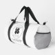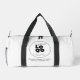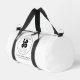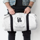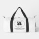 Logotipo de negocio negro personalizado En bolsa de duffel blanco - Simplemente sube tu imagen o gráfico del logotipo de la compañía en negro u negro a esta plantilla con dos líneas de texto personalizadas