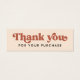 Gracias por tu compra mini tarjeta de inserción con texto en blanco "Gracias" en un tipo de letra retro. Texto marrón terracota (o color personalizado) sobre un fondo más pálido. Añade tu propio logotipo en la parte posterior. Puede cambiar los colores, mover y redimensionar elementos con la herramienta de diseño.