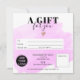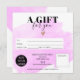 Moderno y abstracto ladrillo de color púrpura pastel color de agua simple certificado de regalo cuadrado, añada su logo, con un corazón de oro rosa. Certificado de regalo de cumpleaños o Navidades perfecto.