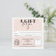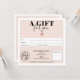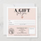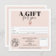 Moderno certificado de regalo cuadrado simple rosa pastel de color rosa pastel, añada su logotipo, con un corazón dorado subió. Certificado de regalo de cumpleaños o Navidades perfecto.
