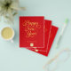 Este mensaje de Año Nuevo está en papel de volante y es muy delgado. Los sobres no están incluidos. Elegantes volantes de Año Nuevo Personalizado para empresas. Fondo rojo, texto dorado. Celebre la temporada con nuestras sofisticadas y modernas tarjetas de fondo blanco Happy New Year, diseñadas especialmente para empresas. Personalice y agregue su logotipo y su texto.