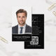 Tarjetas de visita de borde curvo modernas, verticales, negras y plateadas (gradiente de color impreso, no Relieve metalizado real) con su nombre y título en los campos de la plantilla delantera y de personalizable para su información de contacto, logotipo y código QR en la parte posterior. Puede cambiar los colores de fondo y fuente, mover y cambiar el tamaño de los elementos con la herramienta de diseño.