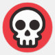 Pegatina con un sencillo logo en el cráneo con un fondo rojo.