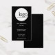 Diseño moderno y profesional de plantillas de tarjetas de visita vertical en color blanco y negro. Este diseño se puede personalizar para incluir en su propio logotipo profesional de negocio, nombre, título, correo electrónico, número de teléfono, dirección y sitio web de la empresa. En esta plantilla de personalizado el texto está en blanco contra un fondo de color negro. Esta plantilla sería genial para una pequeña empresa.