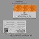 Aumente su negocio con el Certificado de Regalo de Naranja Gris Negro con el logotipo QR Code, que incluye un diseño de plantilla naranja, gris y negro en un cómodo formato de paisaje de 3,5" x 2". La parte delantera muestra un patrón de diamante naranja en la mitad superior e inferior, en texto negro sobre gris. La tarjeta tiene espacio para un marcador de posición del logotipo de la empresa, nombre de la empresa y en un guión elegante "Un Certificado de Regalo para Usted", dándole un aspecto pulido y profesional. El lado inverso está cuidadosamente organizado con campos de personalizable para el nombre del destinatario, el nombre del remitente, el valor, la fecha de caducidad y el emisor, así como un área designada para el código de seguimiento de su empresa. Debajo de estos campos, hay amplio espacio para términos y condiciones que aseguren la claridad. A la izquierda, un código QR con una llamada a la acción ('Scan!') proporciona una forma fácil para que los destinatarios puedan acceder a detalles importantes de uso o servicios. El lado derecho está reservado para su información esencial de negocios, incluyendo su sitio web, correo electrónico, número de teléfono y dirección física. Este certificado de regalo es una herramienta de marketing versátil ideal para pequeñas empresas de servicios como esteticistas, boutiques, gimnasios, masajes, spa, etc. Personalizar fácilmente reemplazando el texto, el logotipo y los detalles del código QR para alinearlo perfectamente con la marca. Todos los elementos de la plantilla son personalizable de color. Para obtener más inspiración sobre branding y marketing de negocios fuera de línea, visite www.KBMD3signs.com. Si necesita cualquier tipo de ayuda para la personalización o tiene alguna pregunta, no dude en ponerse en contacto con nosotros en info@KBMD3signs.com.