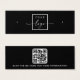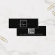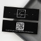 Mini tarjeta de visualización de producto de pendiente negra con plantilla de logotipo de personalizado central y código QR en la parte posterior. Se pueden ajustar las guías de asignación agregando y eliminando espacios en el campo de plantilla y moviendo todo el elemento en la herramienta de diseño.