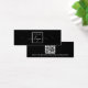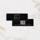 Mini tarjeta de visualización de producto de pendiente negra con plantilla de logotipo de personalizado central y código QR en la parte posterior. Se pueden ajustar las guías de asignación agregando y eliminando espacios en el campo de plantilla y moviendo todo el elemento en la herramienta de diseño.