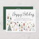 Minimalista tarjeta de vacaciones moderna para su negocio con ilustraciones abstractos retro de árboles y estrellas verdes, terracota y dorados de Navidad, "Felices Fiestas" en un guión elegante y tu saludo y nombre de compañía en una tipografía simple. En la parte posterior, personalice un mensaje adicional de apreciación, cargue el logotipo de su empresa e introduzca la dirección de su sitio web para crear un código QR escaneado.