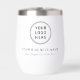 Moderno tumbler térmico promocional para su negocio con el logo de su empresa. Añada su nombre comercial y eslogan u otro texto en una tipografía simple.