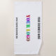 Colores y tipos de letra personalizados - Toallas de playa con su nombre de logotipo Sitio Web Promocional Personalizado Empresa Promoción de Oficinas Negocios o Colores de Personalizable personal y Texto Moderno Regalo de toallas de playa - Añadir su logotipo - Imagen - Foto / Nombre - Compañía / Sitio web o correo electrónico o teléfono - Información de contacto / Dirección - Redimensionar y mover o eliminar / añadir elementos - Imagen / Texto con herramienta de personalización. Elige / Agrega tu fondo favorito y colores de texto / fuente / tamaño. Por favor vea mis otros proyectos / diseños. También puede transferir estos diseños a más de 1000 productos Zazzle. Por favor use su logotipo - imagen que no infrinja los derechos de autor de nadie!! Buena suerte - Estar contentos :)
