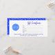 Haga una declaración con nuestro sofisticado certificado de regalo azul con un elegante logo de guión. Este exquisito diseño es el epítome del lujo y el refinamiento, perfecto para empresas de lujo y clientela exigente. El tono azul tranquilizante crea una sensación de tranquilidad y confianza, mientras que el elegante logo del guión añade un toque de sofisticación. Diseñado con meticulosa atención a los detalles, este certificado de regalo es más que sólo un pedazo de papel; es una representación tangible de los valores de su marca. Personalizar con su logotipo único y eleve la imagen de su empresa a nuevas alturas. Ideal para spas de gama alta, tiendas boutique y servicios exclusivos, este certificado de regalo seguro impresionará. Imprimido impecablemente en papel de primera calidad, este certificado de regalo ofrece un ambiente lujoso que refleja el valor del regalo en el interior. Ya sea por cumpleaños, aniversario o ocasión especial, este elegante diseño hará que el destinatario se sienta verdaderamente apreciado. Eleva tu experiencia de regalo y deja una impresión duradera con nuestro certificado de regalo azul con un elegante logo de escritura.