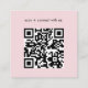 Logotipo de código QR suave rosa Tarjeta de presentación cuadrada de la tarjeta de presentación Square con el logotipo de código QR suave y elegante. Con un suave fondo rosa rubor con acentos en blanco y negro, esta plantilla moderna es perfecta para mostrar tu logotipo, información de contacto, título de trabajo y un escaneado código QR. Ideal para profesionales creativos, emprendedores y marcas de belleza o estilo de vida, esta tarjeta combina elegancia con función. Personalice fácilmente su información usando el botón "Personalizar" y solicite sin problemas en línea. Diseño de Ana Garza/Kardz Studio. Si tienes alguna pregunta, por favor contacta conmigo a través de la charla de Zazzle.