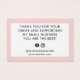 ¿Sabes esa sensación de baile feliz que tienes cuando recibes otro pedido para tu pequeño negocio? Hágale saber a sus clientes con una tarjeta de agradecimiento para que coincidan con la marca de su empresa. Simplemente sube tu logotipo y edita el texto para adaptarlo a tu estilo y necesidades de tu agradecimiento. Edite para incluir su sitio web y medios sociales para mayor publicidad y detalles de contacto. Si necesitas algún ajuste de diseño, por favor, siéntete libre de enviarme un mensaje y me gustaría ayudar. Se dispone de más productos comerciales personalizados y productos de coordinación. Por favor, navegue por mi tienda.
