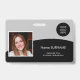 Tarjeta de identificación personalizada para empleados - identificación moderna minimalista elegante en negro y gris con el logotipo de su empresa personalizado, foto, nombre, título, código QR o código de barras, y otros detalles - si es necesario. +++++++++++++ Fácil de personalizar con su información en ambos lados. +++++++++++++++ Adecuada para empleados corporativos, gerentes, ejecutivos, contadores, personal de oficina comercial, almacenes, empresas minoristas y logísticas. +++++++++ Tenga en cuenta que el color de fondo, las fuentes y los tamaños del texto se pueden cambiar. Puede cargar un código QR de escaneo o un código de barras o agregar cualquier otro texto en la parte posterior.