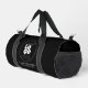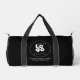 Logotipo de negocios blanco personalizado en bolsa de duffel negro - Simplemente sube tu imagen o imagen del logotipo de la compañía blanca o brillante / luminosa a esta plantilla con dos líneas de texto personalizadas