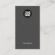 Tu tarjeta de presentación de logotipo de negocios en negro y gris oscuro para hombres y mujeres que presenten el logotipo de tu empresa, dos carteles de agujeros impresos, texto personalizado delante y detrás, con nombre de negocio, sitio web, dirección, descripción del producto y cualquier información adicional. Una útil herramienta unisex elegante para diseñadores de joyas y tiendas de comestibles. Crea tu propio diseño único con esta plantilla de visualización sencilla, moderna y básica.