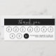 Diseño de plantillas de tarjetas de fidelización en blanco y negro moderno y profesional. La parte frontal tiene un logo de la empresa en una parte contra un color blanco, con el lado derecho negro con texto personalizado. El reverso también está en blanco y negro, con círculos que golpear para cada visita. El encabezado de ambos lados está en un estilo de script, mientras que el texto restante es sans serif de tipo empresarial. Esta tarjeta tiene 10 espacios para marcar o marcar cada visita o compra del cliente, con un descuento o regalo del cliente ofrecido por décima vez. Si te gusta esta tarjeta de fidelización pero te gustaría un número diferente de golpes antes de una recompensa de cliente, por favor envíame un mensaje.