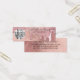 Esta tarjeta de presentación de logotipo de negocio de aretes pequeños y glamurosos es la forma perfecta de estilizar su embalaje y agregar su propio estilo y personalidad. Cuenta con gotas de purpurina gruesa de rosa dorado brillante impresas falsas en la parte superior de un fondo de lámina de oro rosa. La tipografía es un elegante guión cursivo con una fuente serif moderna para que coincida. Es chic, bonita, única y lujosa; la forma perfecta de anunciar su negocio y estilizar su material de marketing y publicidad para sus clientes. (los agujeros de los aretes son marcadores impresos solamente, la perforación debe ser completada por el cliente)