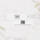 Mini tarjeta de visualización de producto de pendiente blanca con plantilla de logotipo de personalizado central y código QR en la parte posterior. Se pueden ajustar las guías de asignación agregando y eliminando espacios en el campo de plantilla y moviendo todo el elemento en la herramienta de diseño.