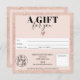 Moderno certificado de regalo cuadrado, sencillo, rosa y pastel, con purpurina de oro rosa, añada su logo, con un corazón de oro rosa. Certificado de regalo de cumpleaños o Navidades perfecto.