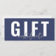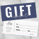Certificado de regalo de negocios Minimalista de Moda de logotipo. Añade tu logotipo al frente para que sea el tuyo. Esta simple y elegante tarjeta horizontal plana es perfecta para marcas corporativas, pequeñas empresas o individuos como maquilladores, esteticistas, peluqueros y más! El diseño actual presenta una combinación de tonos azules, negros y blancos, pero se pueden personalizar los colores para que coincidan con el estilo de la marca. La parte frontal muestra una moda y una mezcla profesional de tipografía moderna y de escritura. En la parte posterior, el logotipo y los detalles comerciales se muestran en el lado izquierdo, mientras que el lado derecho proporciona espacio para escribir en la información del destinatario. Un diseño elegante y funcional para una experiencia de regalo pulida.