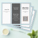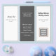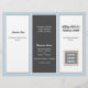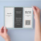 Plantilla de folleto de negocios triple plegado en gris oscuro, azul claro y blanco. Personalizar seis secciones que incluyen un logotipo de negocio en la parte delantera, código QR y plantilla de foto en el interior. El panel central tiene un lugar para una foto personal para la sección "about". Siéntase libre de usar el área de "editar" para cambiar y / o mover fuentes, o contáctame para obtener ayuda.