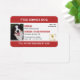 Servicio horizontal tarjeta de llamadas de perros en rojo y blanco con espacio para una foto del perro de servicio y un logotipo. Añadir nombre, título y número de registro. Agregue también el nombre del controlador y la información de contacto.